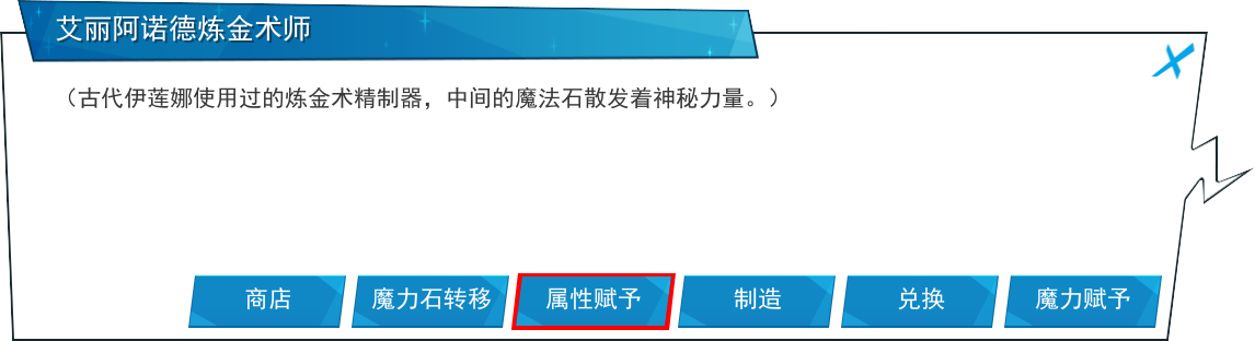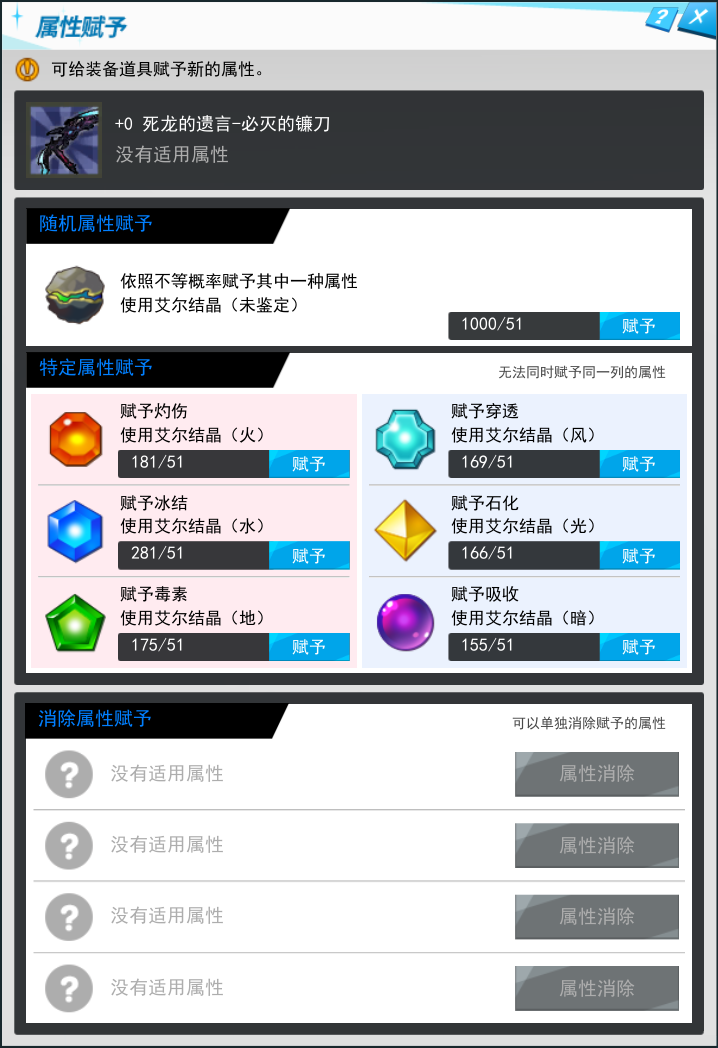 属性赋予是使用艾尔结晶给装备赋予特定的属性。