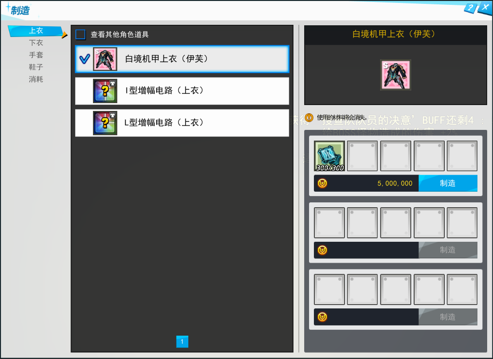 在集结地:钢铁城壁临时据点的NPC海云处可以制造白境机甲防具。