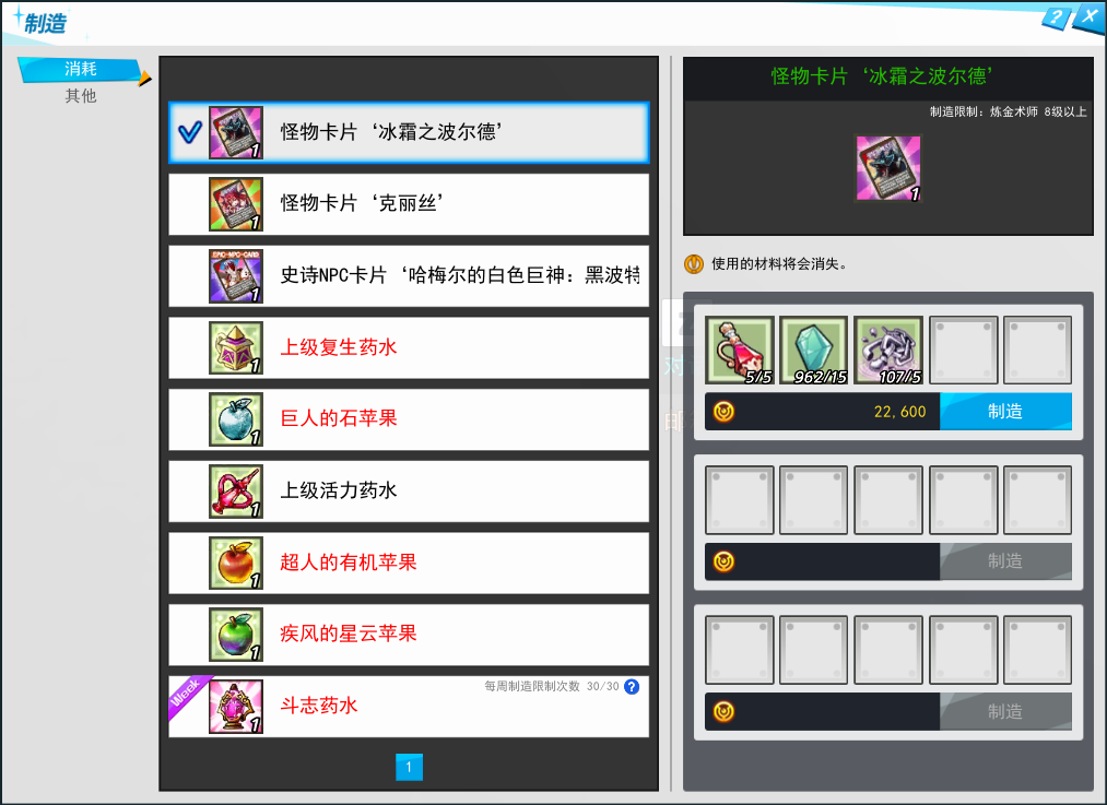 斗志药水每周制造限制30次。