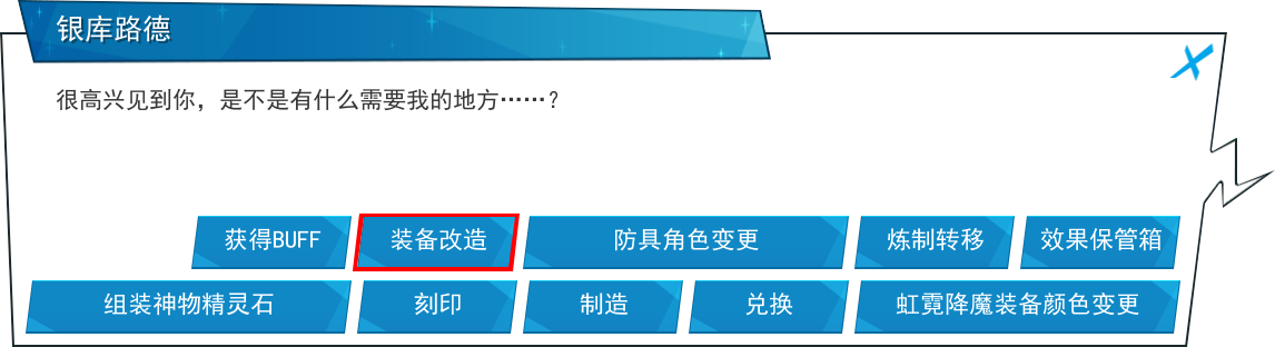 在梦歌魅利亚的NPC瓦西里处点击“装备改造”按钮后,会进入改造界面。