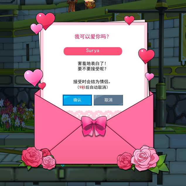 接受情侣申请的角色在10秒内确定就会结为情侣。