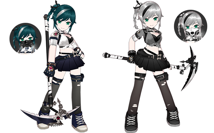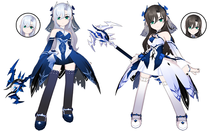 暗夜:月光下纯白或漆黑的服装,干枯的玫瑰正在安慰悲伤的名字。稀有礼包内额外含有另一个发型。