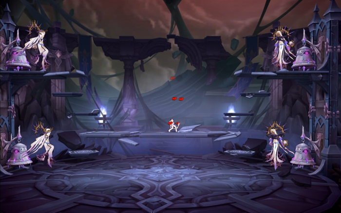 出现在镜子彼端的空间,让人联想到了那熟悉而又令人恐惧的深渊。弥散着深渊魔气的祭司的祭坛,净化的钟声无尽的回响着。副本中在地图的上下左右4个角有4鼎圣钟,当角色身上出现箭头光环时,如果发射的方向上有圣钟,那么圣钟的百分比%数值就会增加,当增加至100%时,即可获得该圣钟对应的BUFF效果。BOSS在舞台中央会发布面对整张地图的攻击,需要玩家找到安全地点进行躲避。