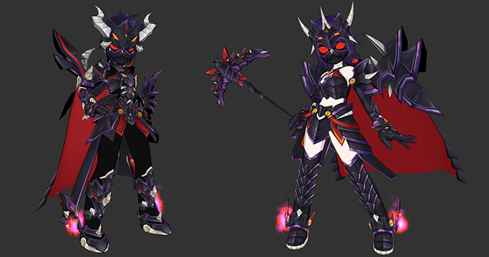 龙骑士:暗之血盟重骑兵团,龙骑士-暗面的甲胄,用暗黑界巨龙的骨头与鳞片制作而成的,围绕着黑暗的气息。